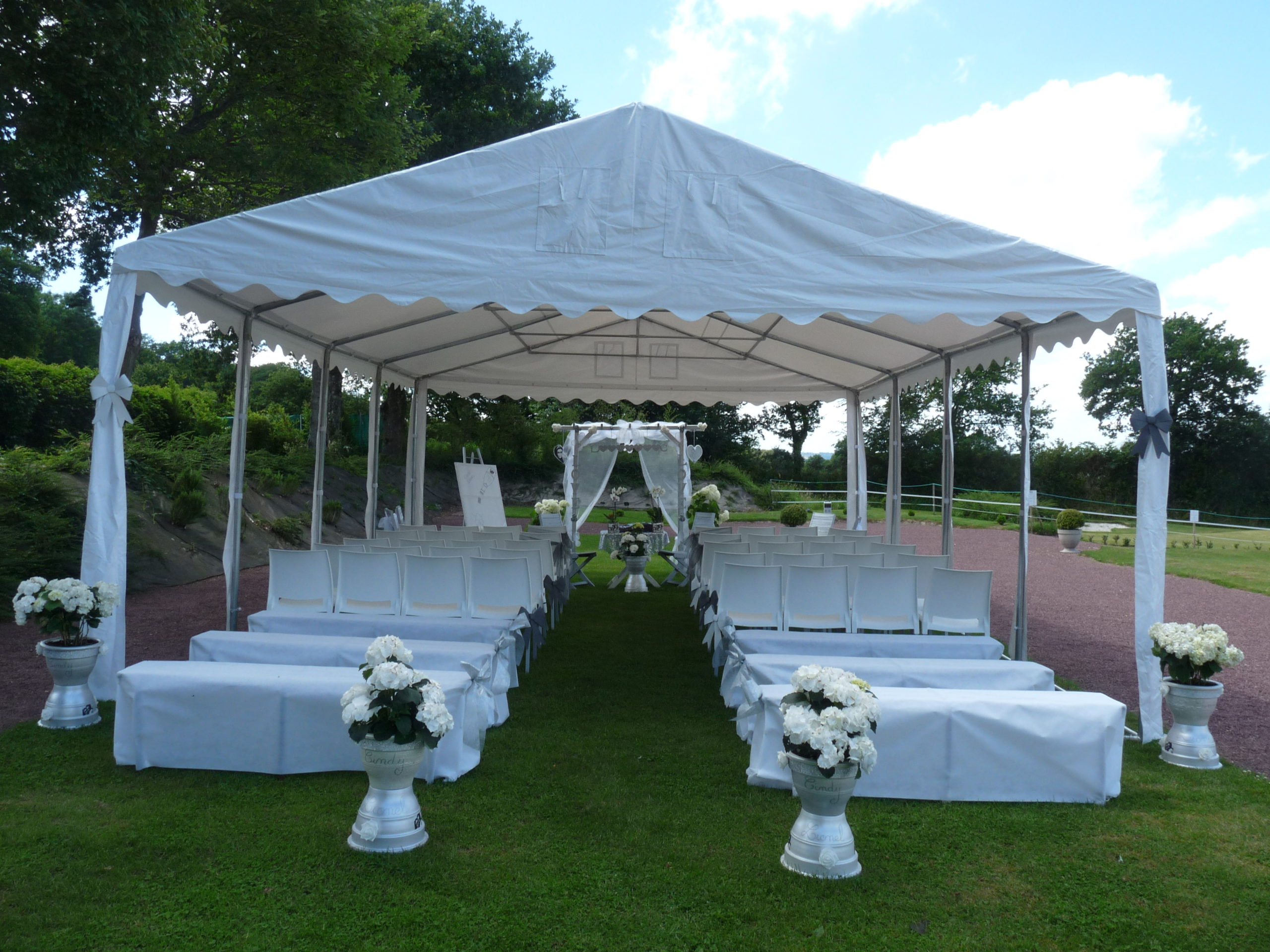 la porte latérale de lla tente permet un accés facile et pratique au vin d'honneur