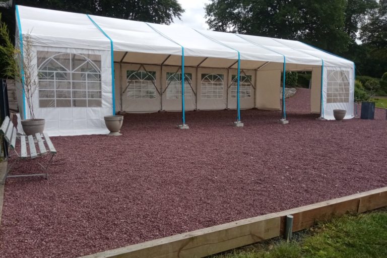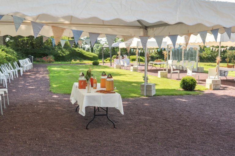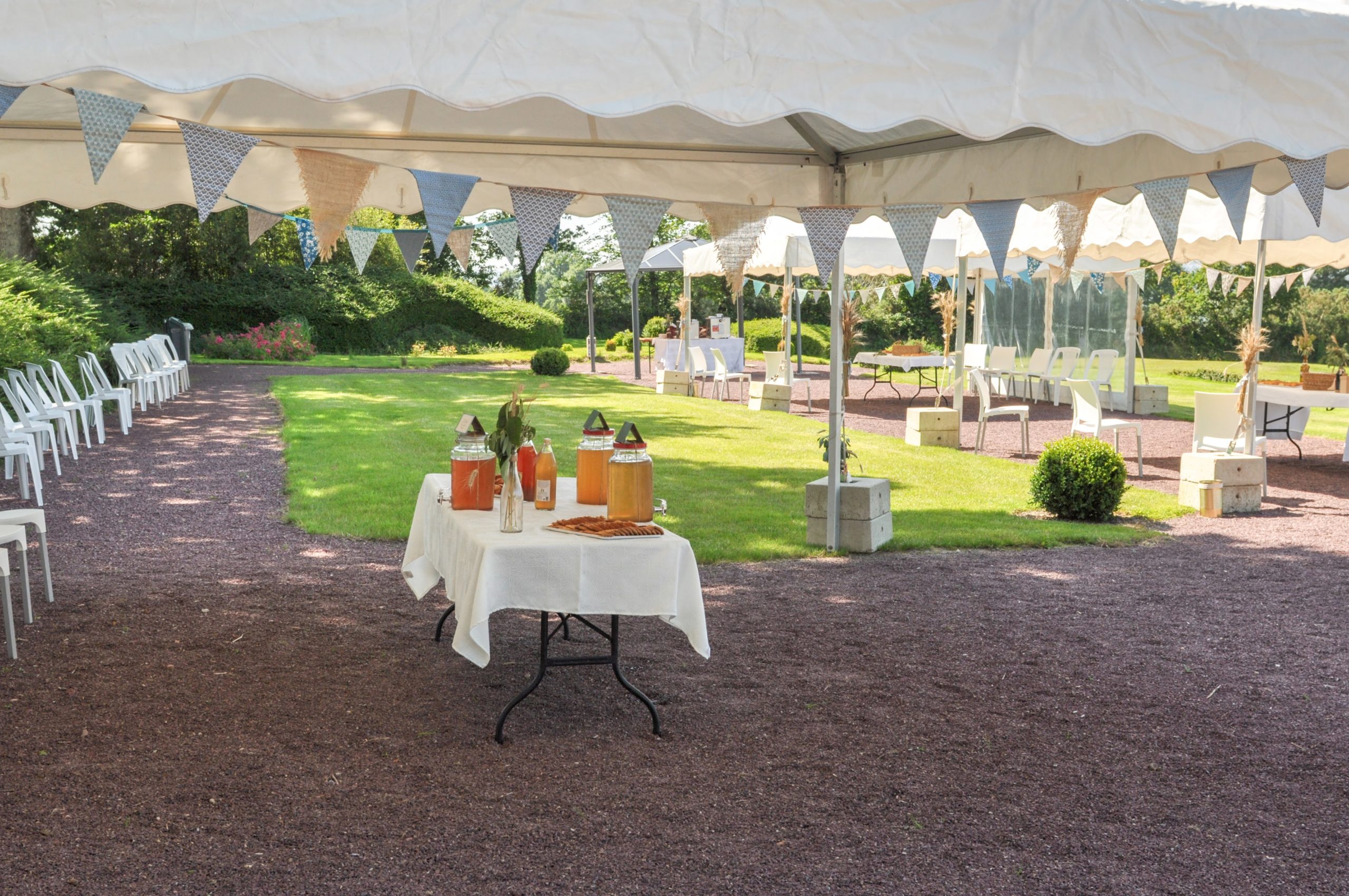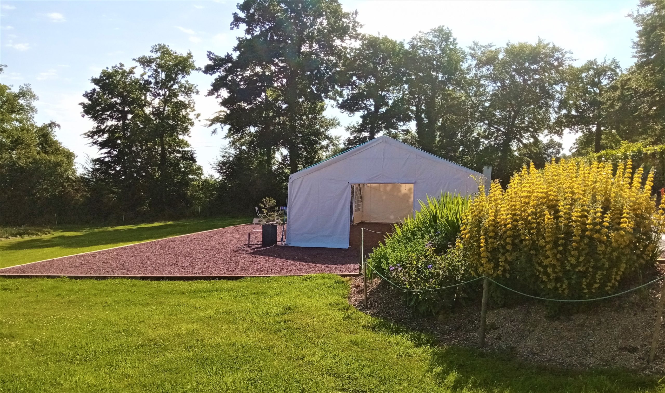 un plan B déjà présent dans le jardin , la tente peut accueillir une centaine d'invités