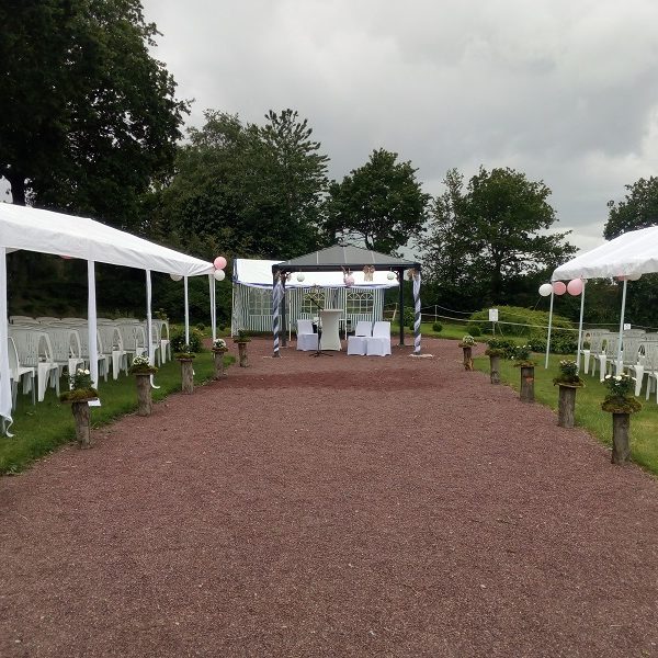 Le domaine du Fief de Jade dispose de deux grands espaces dans son jardin : une allée avec un kiosque pour les cérémonies et un espace jardin avec une tente de réception pour une centaine d’invités. Les jardins offrent un aménagement moderne et fleuri, idéal pour les cérémonies laïques. Les espaces de réception sont équipés de prises de courant pour brancher des meubles froids ou de l’éclairage. Les grands chênes permettent également de placer les invités à l’ombre lors des journées ensoleillées. Le Fief de Jade offre ainsi un cadre idéal pour imaginer votre cérémonie de mariage ou vin d’honneur, avec une grande capacité d’accueil et une flexibilité de configuration.