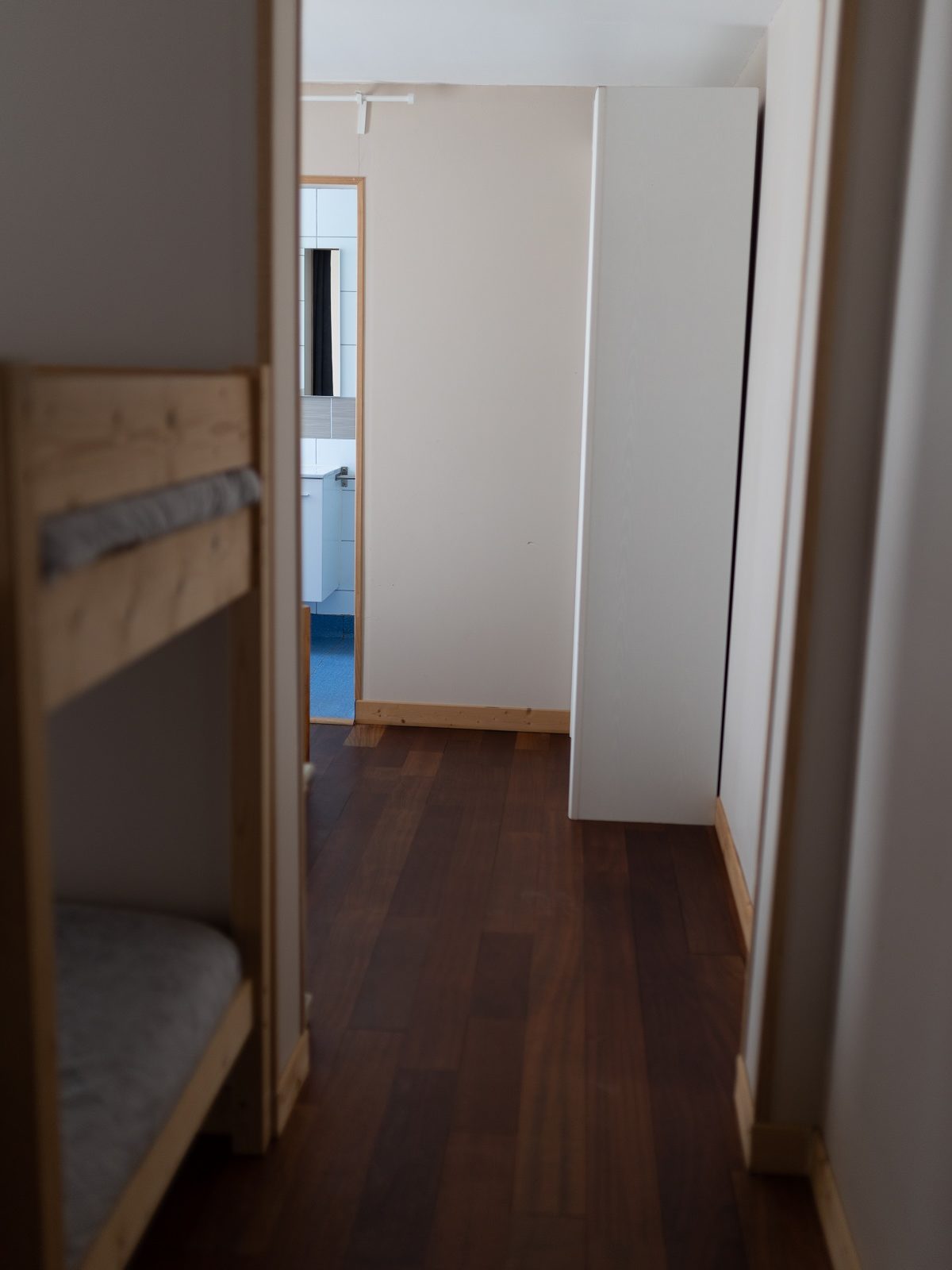 Détendez-vous dans une chambre chaleureuse avec un parquet confortable et un équipement haut de gamme. Avec notre linge jetable de qualité et nos couvertures polaires, nous offrons un confort ultime à nos clients. De plus, la chambre dispose d’un dressing et d’une tablette murale pour votre commodité.