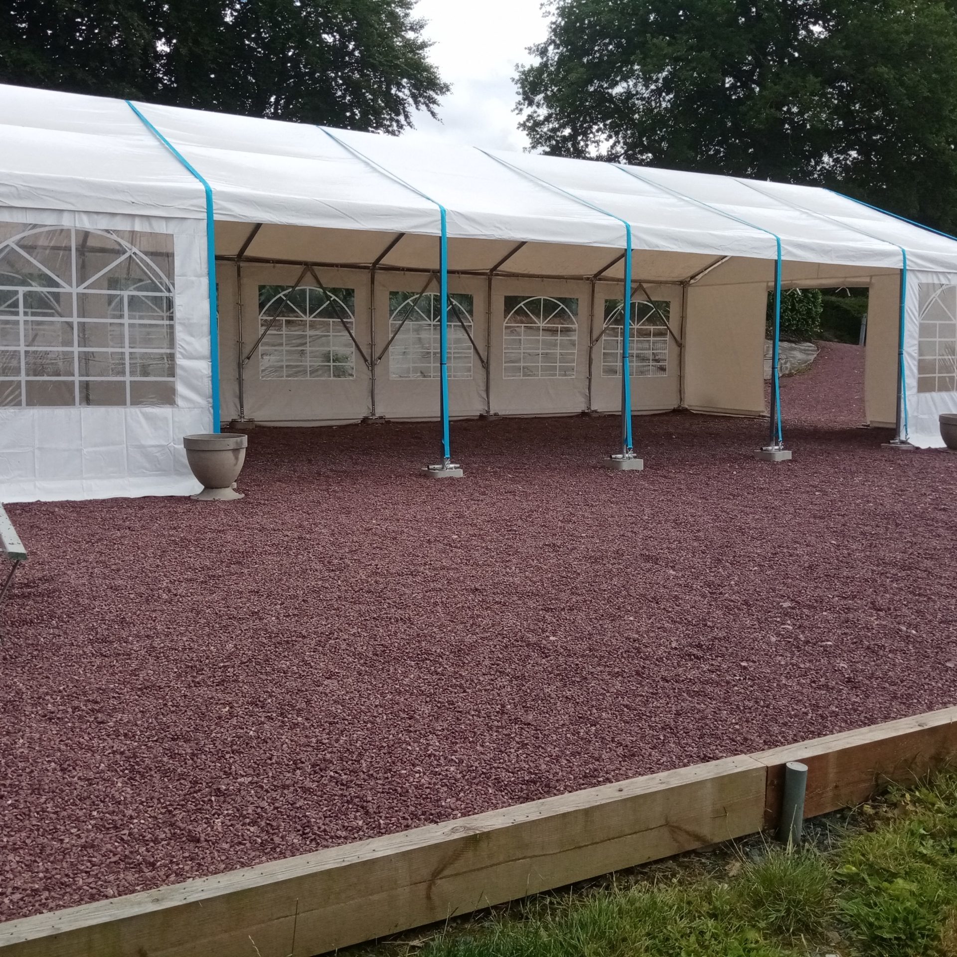 Profitez d'un espace unique au cœur du parc du domaine grâce à notre tente de réception incluse dans la location, sans aucun coût supplémentaire. Cette option vous permet d'économiser près de 1000€ sur la location d'une structure similaire.